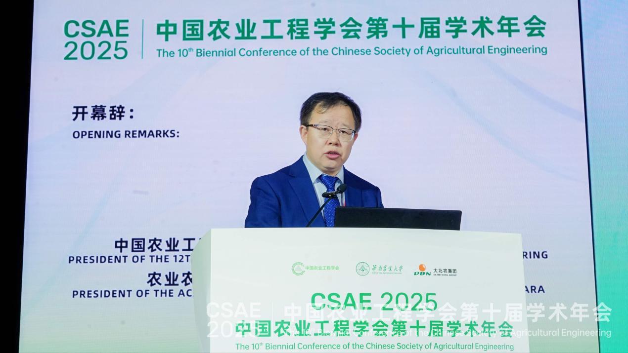 中国农业工程学会理事长、党委书记,农业农村部规划设计研究院院长、党委书记王衍发表致辞第十四届全国政协委员、农业农村部原副部长马有祥在致辞中指出,改造传统农业、发展农业战略性新兴产业、布局未来产业都离不开农业工程技术赋能,乡村基础设施、公共服务设施和人居环境设施建设都需要农业工程的深度渗透与融合。广东省农业农村厅二级巡视员曾思坚,华南农业大学校长薛红卫,国际农业工程学会主席、丹麦奥胡斯大学教授Claus Grøn Sørensen,韩国农业工程学会副会长、韩国全北国立大学教授Taeil Jang(张太溢)依次致辞。开幕式同期,中国农业工程学会名誉理事长、中国工程院院士、沈阳农业大学教授李天来发布了“面向‘十五五’农业工程领域十大前沿科技热点问题”,中国农业工程学会执行秘书长王应宽研究员发布了学会“十大软科学自主研发课题”。随后,举行了中国农业工程学会科普志愿服务分队授旗仪式。在主旨报告环节,第十四届全国政协委员、中国农业科学院乡村振兴研究院院长张合成;中国工程院院士、华南农业大学教授罗锡文;第十四届全国人大常委会委员、西北农林科技大学校长吴普特;中国工程院院士,新疆石河子大学、江苏大学教授陈学庚,先后以《新时代城乡融合发展态势观察》《中国智慧农业的研究进展》《西北绿洲农业精量微灌水肥协同调控技术与设备》《智慧农业技术与装备促进粮棉生产创新发展》为题做主旨报告。中国工程院院士,国家农业信息化工程技术研究中心主任、首席科学家赵春江;中国农业大学副校长杜太生;国际欧亚科学院院士朱明;欧洲科学、艺术与人文学院,格鲁吉亚国家科学院外籍院士兰玉彬等八位中外院士专家,分别就《农业人工智能与机器人研究进展》《作物高效用水与水生产力协同提升》《农村能源革命赋能乡村振兴与绿色发展》《精准农业航空技术装备在低空经济的应用与探索》等主题做主旨报告。据悉,年会同期举办了中国农业工程学会第十二届代表大会,选举产生新一届领导集体、常务理事会及理事会成员。此外,首届农业工程研究生学术论坛、涉农高校院长书记圆桌论坛、《农业工程学报》编委会会议暨创刊40周年座谈会等系列活动同步开展,实现学术交流、人才培养、行业协同的多维联动。会议为期三天,设置开幕式、主旨报告、23个专题分会场、论文墙报展示、科技成果展览及期刊风采展等环节,呈现500余场专题报告、二百余个论文墙报展示,十余家企业、高校及科研院所集中展示最新科技成果,二十多种行业核心期刊亮相交流。(记者 武玥彤)来源: 光明网